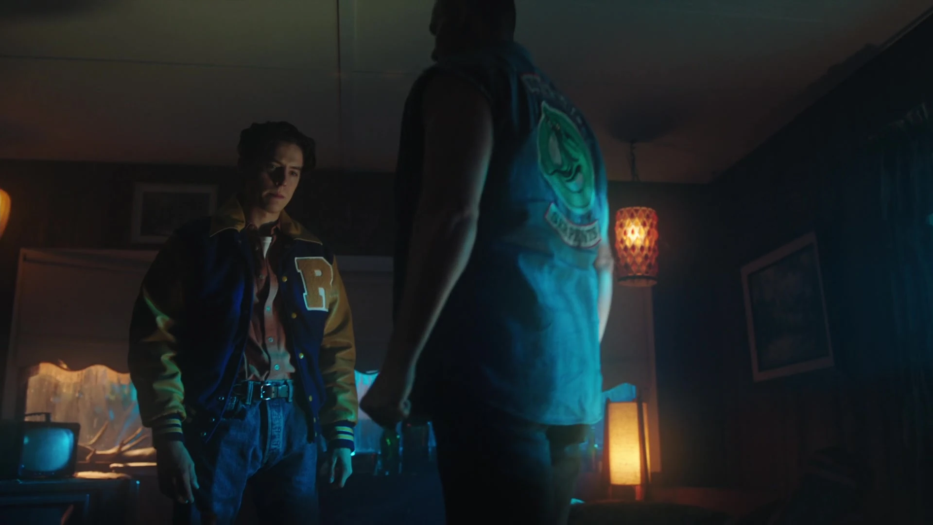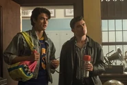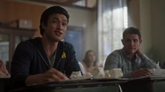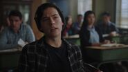 Elsewhere, Marty Mantle and the Riverdale Bulldogs pressure FP into following through with the Bulldog tradition of streaking. FP is initially resistant, but agrees to do so when Fred offers to streak alongside him. While Fred is not a Bulldog himself, last year, the baseball team made him streak and it gained him credibility with the female students. He advises FP to run fast enough to the point where all they’ll see is a blur. With that in mind, FP and Fred take off their clothes and run throughout the halls of the school, which lands them both in detention.
