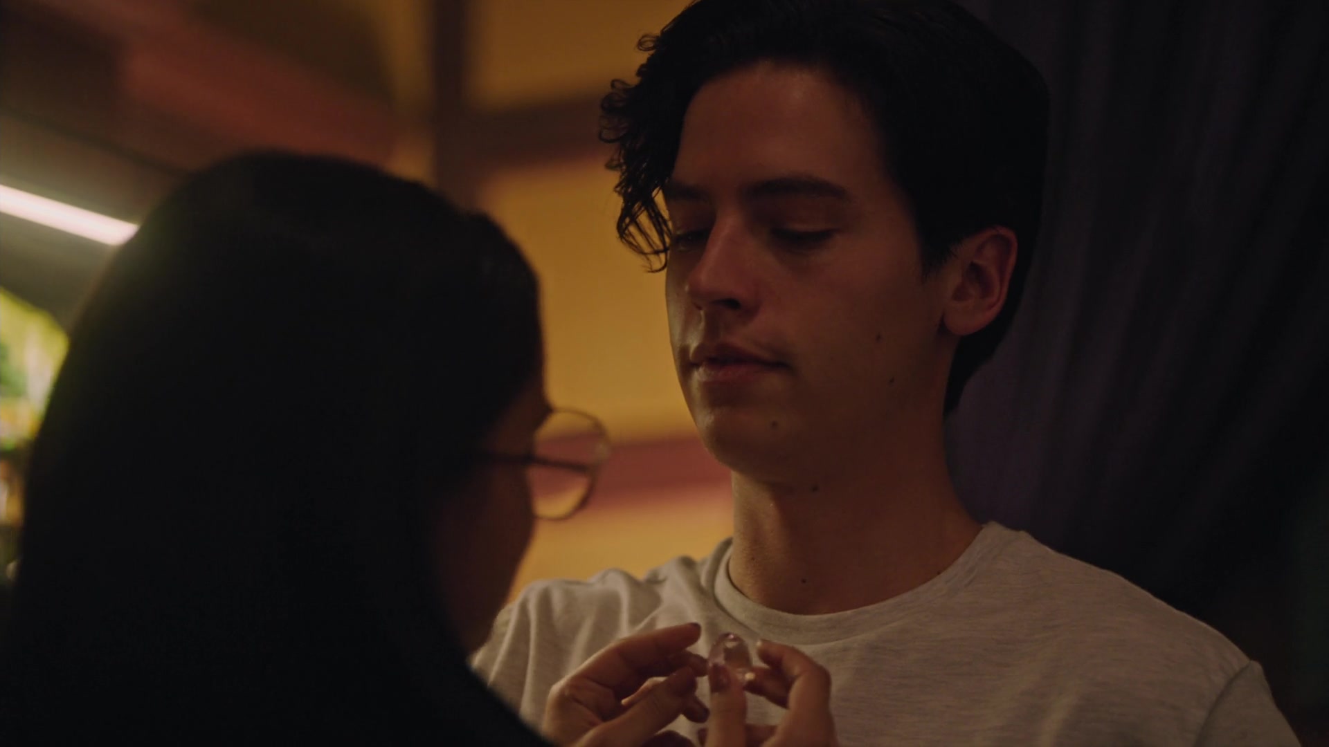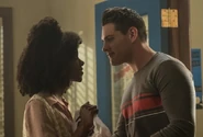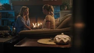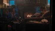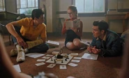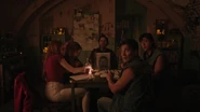 During a game of Secret and Sins, Sierra reveals that she and Tommy have been secretly dating for a few months. When Hermione asks why secretly, Sierra explains that their parents don’t want them dating someone so different. Hermione can relate as her mother is very involved in her dating life as well. Hermione's been seeing Hiram Lodge, who Penelope accuses of being a petty criminal. However, to Hermione, he’s a self-starter, providing for his family. But to her mother, Hiram is nothing more than a scrub and not the way to the American dream. Hermione questions what dream her mother is referring to given that she works as a maid at the Five Seasons for sixteen hours a day. A life that Hermione doesn’t want for herself. She believes that Hiram has the right idea of getting out of Riverdale at all costs. Fred counters that Riverdale isn’t the problem. He wants to stay there his entire life. Alice asks if that’s how long it’s going to take him to decide between music and baseball. Fred explains that their minor league is solid and they’re close enough to the city to play music gigs. He can even see himself running for mayor one day, which Sierra scoffs at the notion of. She calls it a nightmare job and questions why Fred doesn’t aim higher as he can do all the same things in a real metropolis. Fred can do all those things except look after his father, who’s very ill. Hermione places her hand on Fred’s knee for comfort.