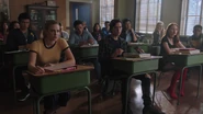 It was their junior year. Back then, before marrying Hal, she was Alice Smith. A teenage bad girl from the wrong side of the tracks with enviable hair, no friends and one huge problem, that she was pregnant. A discovery made while in the ladies restroom at school. Alice bangs on the restroom door in frustration. Hermione Lodge overhears her frustration and opens the stall door to check on Alice, however, she is in no need of assistance, telling Hermione to mind her business. Alice hopes the pregnancy test is merely a false positive but as Sierra explains, false positives only happen approximately 3% of the time. Alice is panicking. She tried to talk to FP, the child’s father, but he blew her off for a River Vixens that he’s hooking up with. Hall monitor Penelope Blossom enters the restroom to ask for their hall passes, but only Hermione has hers. When Penelope looks to Alice for her pass, Alice replies that it’s "up her ass". Penelope retorts by asking if Alice was born with that mouth or if it’s something that southside mothers taught their bastard babies. This leads to a brawl between Alice and Penelope.