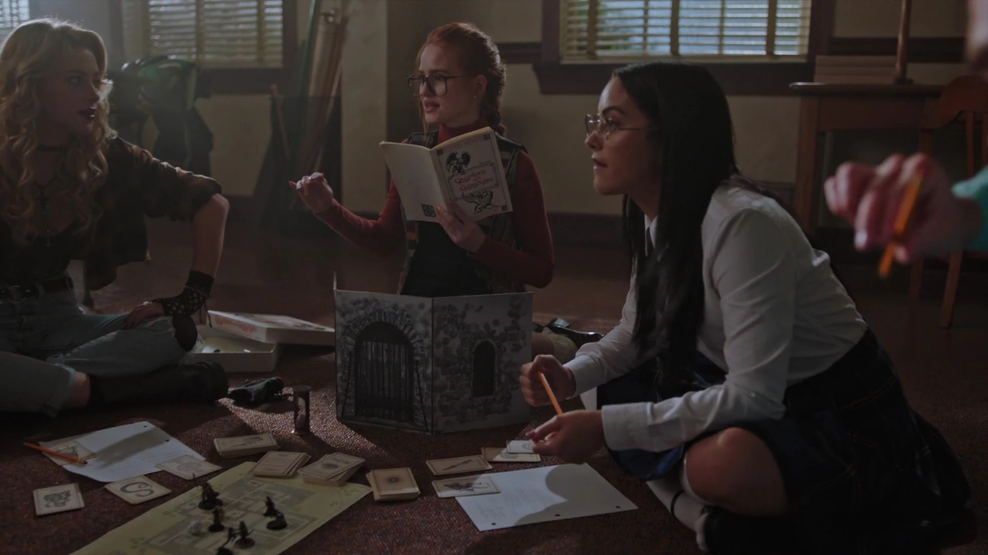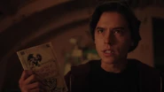 With this, she goes looking for Jughead. She finds him in Dilton's bunker, playing Gryphons and Gargoyles along with Toni, Cheryl, Sweet Pea and Fangs. Betty questions what Jughead is doing but he is clearly too far gone, rambling on about having it all figured out and beating the Gargoyle King.