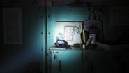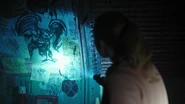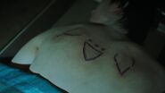 Betty and Jughead meet with Dr. Curdle Jr., who took over his father's coroner business after his passing. The toxicology report revealed lethal levels of cyanide in Dilton's blood. Dr. Curdle surmises that Ben only survived because he didn't drink enough to finish the job. Betty looks to Dr. Curdle, hoping he can determine whether this was a murder or suicide. He replies that the body did show signs of stress and there are three symbols carved out on Dilton's back. He guesses they're Runic. Jughead proceeds to take a photo of the symbols. As for what caused their lips to turn blue, the cyanide was mixed into a sugary drink called "Fresh-Aid". Blueberry flavored. There's something dimly familiar about this case to Dr. Curdle. Still, he's not quite sure if it's a murder or suicide. But whatever it is, it's darker than what happened to Jason Blossom. Or the Black Hood killings. What we're looking at here, is the true face of evil. Afterwards, Jughead develops the photos he took of Dilton's body in a darkroom.