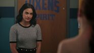 Veronica approaches Cheryl in the locker room after reconsidering her bid for student body president. Veronica admits that Cheryl was right; that protecting Archie's presidency doesn't help him in any meaningful way. However, Veronica does have an idea that would boost Archie's spirits, but she'll need the help of Cheryl and the River Vixens.