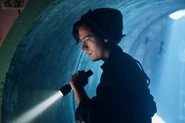 Jughead tries to explain to the scout just how worried his parents are, but he doesn't seem to care. The adventure scout tells Jughead that he's supposed to stay hidden in the bunker until "Master Doiley" comes back. It is then that Betty and Jughead realize that the scout has no idea that Dilton is dead, forcing the difficult task on them of having to reveal that Dilton isn't coming back. The adventure scout was Dilton's apprentice in Gryphons and Gargoyles. Dilton was teaching him how to play so that he could eventually join the game. When Jughead brings up Ben and Ethel, the scout reveals that "Princess Etheline" isn't dating been in real life. Only in the game. And she warned him that Jughead and Betty might invade the bunker. Having gathered all they could, Betty and Jughead take the scout home.