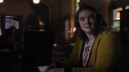 In the Blue and Gold offices, Betty calls Riverdale General Hospital to check in on Ben's status. He's apparently out of the ICU, and so Betty prepares to visit him. Just behind her stands Evelyn Evernever. She introduces herself to Betty, explaining that they almost met through Alice and Polly. Evelyn is the daughter of Edgar Evernever. The leader of the Farm. Evelyn now attends Riverdale High, so she stopped by to say hi and inform Betty that she won't tell anyone about her seizure from the other night. As it turns out, Evelyn was present during Betty's incident. She and her father were invited over by Alice for a cookout and to burn a few of her things. Evelyn then inquires about Betty, who excuses herself to visit Ben.