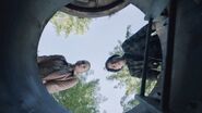 In the student lounge, Jughead confronts Ethel with the twig doll he found in Ben's hospital room. Ethel questions where he got it from, but when Jughead asks what she was doing in Ben's hospital room, Ethel tries to leave. However, Betty pleads with her to cooperate as they're only trying to figure out what happened to Ben, Dilton and the missing scout. Jughead wonders if the twig doll is the Gargoyle King, but it's not. According to Ethel, it's the opposite. She made that talisman to protect Ben. When Betty asks how Ethel and Ben knew each other, Ethel replies that he's her boyfriend. They just started dating that summer and spend most of their time in Dilton's secret bunker in the woods. Given this, Jughead and Betty present Ethel with an ultimatum; either she shows them where the bunker is located or they go to Sheriff Minetta with this information. Ethel caves, telling them that they'll meet up at Fox Footbridge after dark.