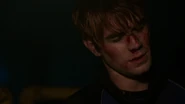 Veronica arrives at the Five Seasons for her date. Nick questions why she's still in Riverdale when all of Manhattan should be kissing her feet. Nick writes it off as a phase, as well as her relationship with Archie. Unbeknownst to Veronica, Archie is watching their date via live stream. She tells Nick to have a seat as she fixes them both some drinks. Nick believes that he and Veronica could've been so much more as her relationship with Archie is beneath her. Veronica asks that he stop talking about Archie. He agrees and then takes a drink. Meanwhile, Archie grows frustrated as he is forced to watch this transpire. Still tied to the chair, Archie kicks back off the table, smashing the chair as he hits the ground, thus escaping his restraints. Archie attacks Nick's friend from behind with a pipe and knocks him unconscious before escaping.