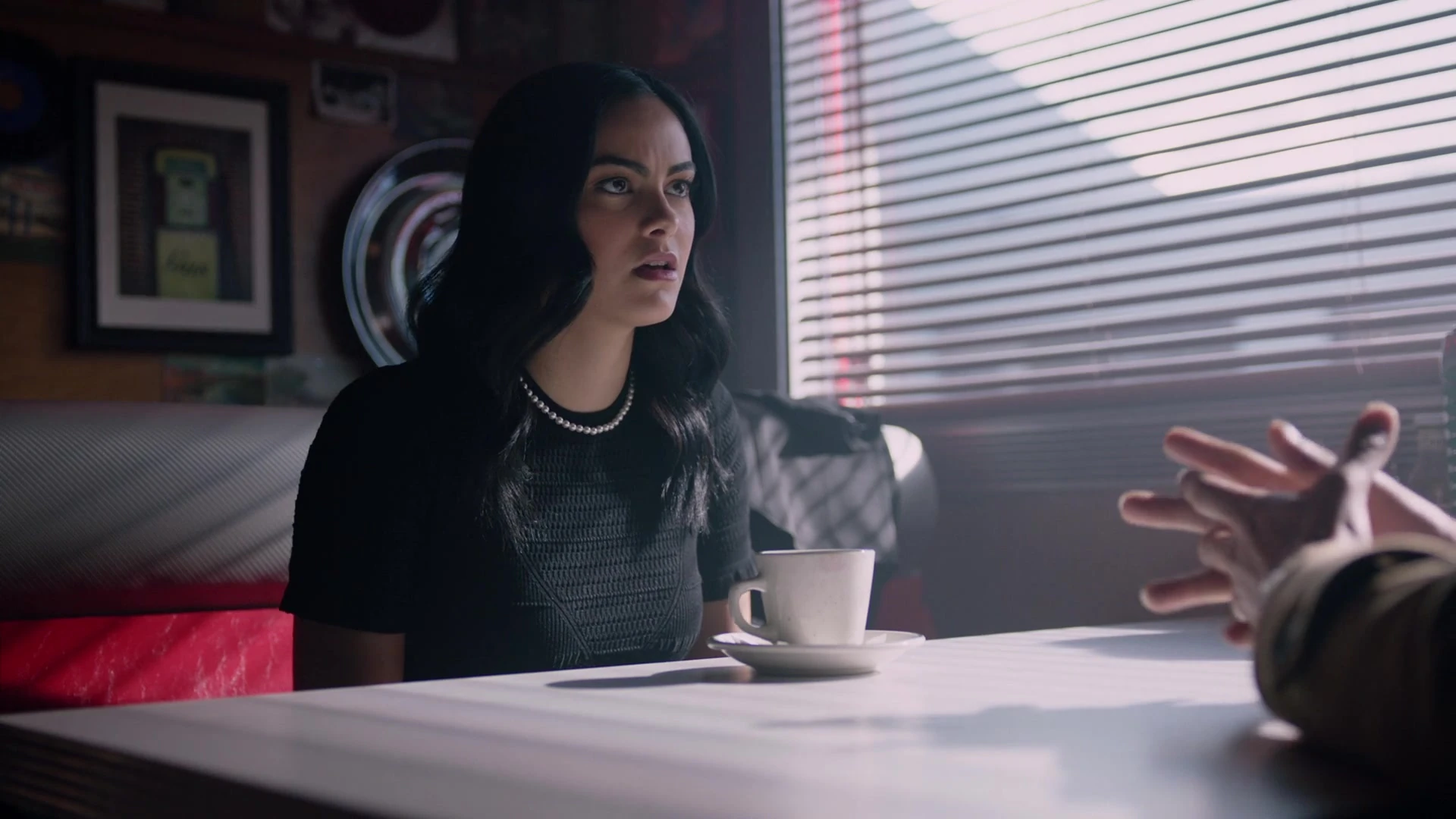 Veronica applies her makeup before heading out for her date with Nick. She sees the necklace that Archie gave her for Christmas and seemingly comes up with an idea.