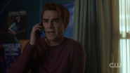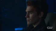 While working out in his garage, Archie is confronted by Veronica over his betrayal in telling Jughead about the Lodges secretly buying Pop's. Veronica reveals that she covered for Archie though he didn't wish for her to do so. But if her dad ever found out that he snitched, Archie would be in deep trouble. Regardless, Archie refuses to apologize for protecting his father. However, Veronica assures Archie that his father is an untouchable, meaning he would never be hurt or corrupted. Veronica then questions what happened to Archie's loyalty as he had sworn his allegiance. Archie reminds Veronica that it was her that wanted his eyes wide open before he committed to her family, and if his dad is going to run for mayor with her parents, he deserved the entire truth, Archie adds. He wants to know Hiram's master plan for the Southside which Veronica was going to tell him at her confirmation until he stopped her. Now, he is ready to know the truth. However, Veronica can no longer tell him. Instead, she instructs him to speak with her father. Though, he has even less time than initially though as his father enters the garage to announce that he is officially throwing his hat in the race for Mayor.