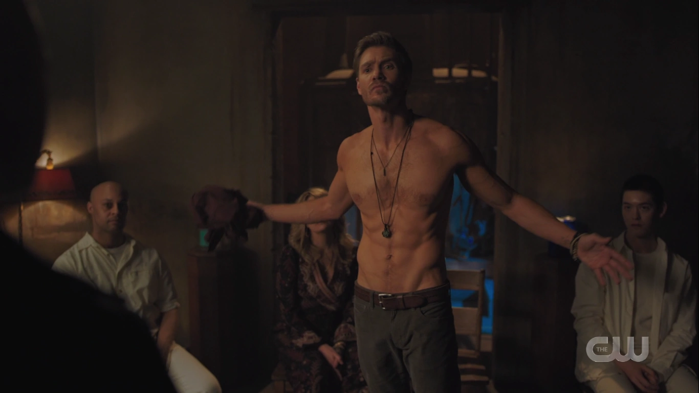 During one of the Farm’s meetings, Edgar tells them that many tribes consume the bodies of their elders when they die to absorb their wisdom. Betty and Jughead then interrupt and accuse Edgar of being the Gargoyle King. He invites Betty to join them so that they can unpack her obsession with the Gargoyle King. Betty instead tells Edgar to take off his shirt so that she can see his tattoos. Edgar claims that he only has one tattoo. An infinity symbol on his wrist, like many members of the Farm. Betty's talking about the runic symbols she believe are on his back. With nothing to hide, Edgar takes off his shirt, revealing a bare back with no tattoos, asking if Betty is satisfied.
