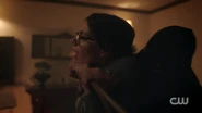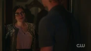 Archie returns to her home the next day with one question in mind, if her real name was Jennifer Gibson. Geraldine tells him that she had a drunk and abusive husband who would come home from work with a temper. One night he beat her to the point where she was in the ER with broken ribs and a shattered collarbone. The next morning, he barely remembered the fight, and he promised it wouldn't happen again. But when it did, she divorced him, changed her name, and moved to Riverdale, where she eventually met Archie. Seeing the pain in her eyes, Archie approaches Geraldine and holds her close.