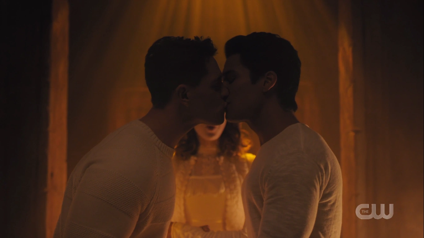 Kevin has a drink with Lester Darin at Molly's Crisis. He’s heard urban myths about Riverdale but is doubtful that the Gargoyle King terrorizing the town is a true story. However, Kevin promises him that it is. He never thought he would survive high school let alone live long enough to write a play. Lester places his hand on Kevin’s thigh and asks if they’ve met before. Kevin removes his hand and continues to discuss his play with Lester, who asks Kevin to come back to his place, where they’ll recreate the bunker scene and maybe he’ll consider work-shopping his play. When Kevin asks what that’ll entail, Lester whispers into his ear. All the while, Pepper watches from the bar.