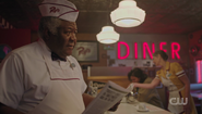 Pop's father, Pop Senior, was the original owner of Pop's Chock'lit Shoppe, but at some point the responsibility for running the shop fell on Pop's shoulders due to his father's declining health, and so Pop Tate was forced to drop out of high school. Throughout his years working at the Chock'lit Shoppe, he's remembered every single order of his loyal customers. He hopes to work at the diner until the day he dies, taking pride in his job.[2] In "Chapter Fifteen: Nighthawks", the diner was secretly bought by Lodge Industries. In exchange for Pop's silence, he stayed on as manager of the diner. The ownership of Pop's would juggle between the Lodges before finally becoming Veronica's property. Before leaving for Barnard, she returned ownership to Pop Tate.